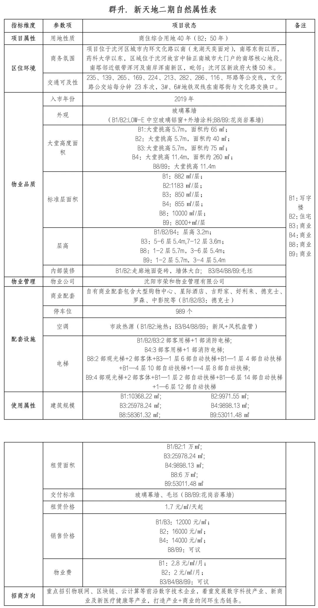 项目简介:群升·新天地二期位于沈阳市沈河区城市内环文化路以南,南塔东街以西,药科大学以东,区域位于沈河故宫中轴正南城市大门户的南塔核心地段。项目有写字楼、公寓、裙房、商场、住宅等多个产品形态。周边公交线路四通八达,拥有完善的市政配套设施和浓厚的商业氛围。