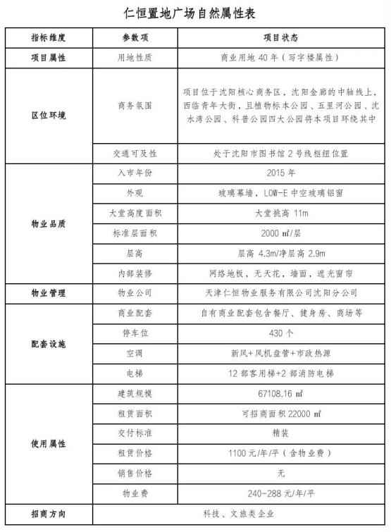 项目简介:仁恒置地广场位于沈河区青年大街209号,2015年9月建成,属5A级写字楼,建筑面积6.7万平,总高42层,地下3层,拥有1200㎡双大堂、14部电梯的超甲级商务中心。目前已引进赫迪安品牌管理有限公司、中国平安人寿保险、内蒙古伊利实业集团有限公司等76家企业。
