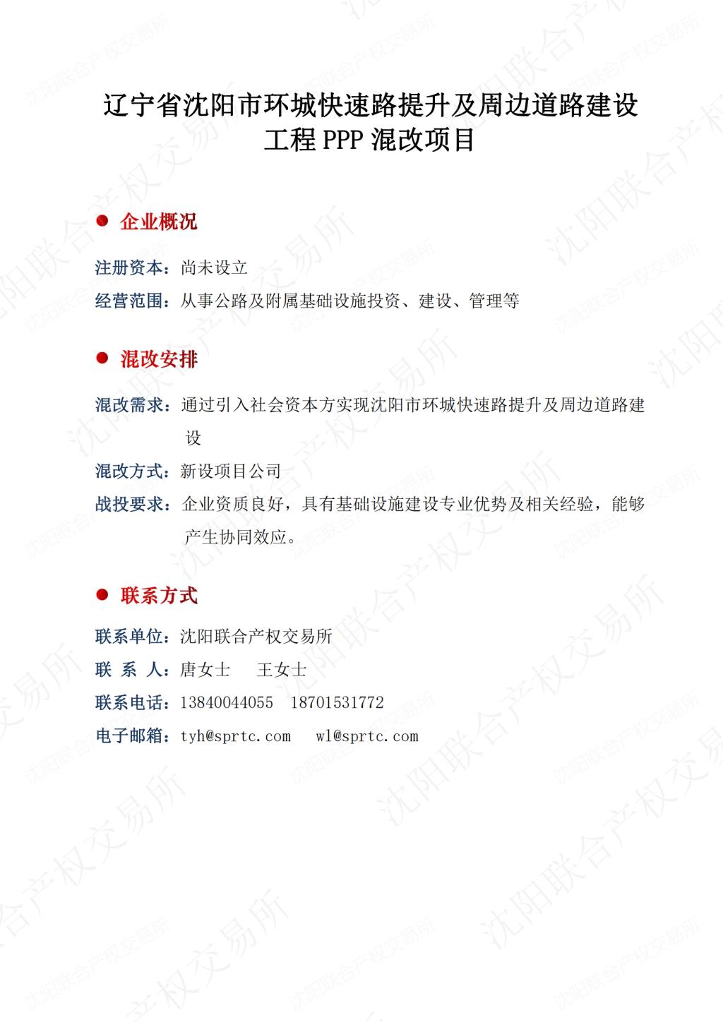 4.辽宁省沈阳市环城快速路提升及周边道路建设工程PPP混改项目