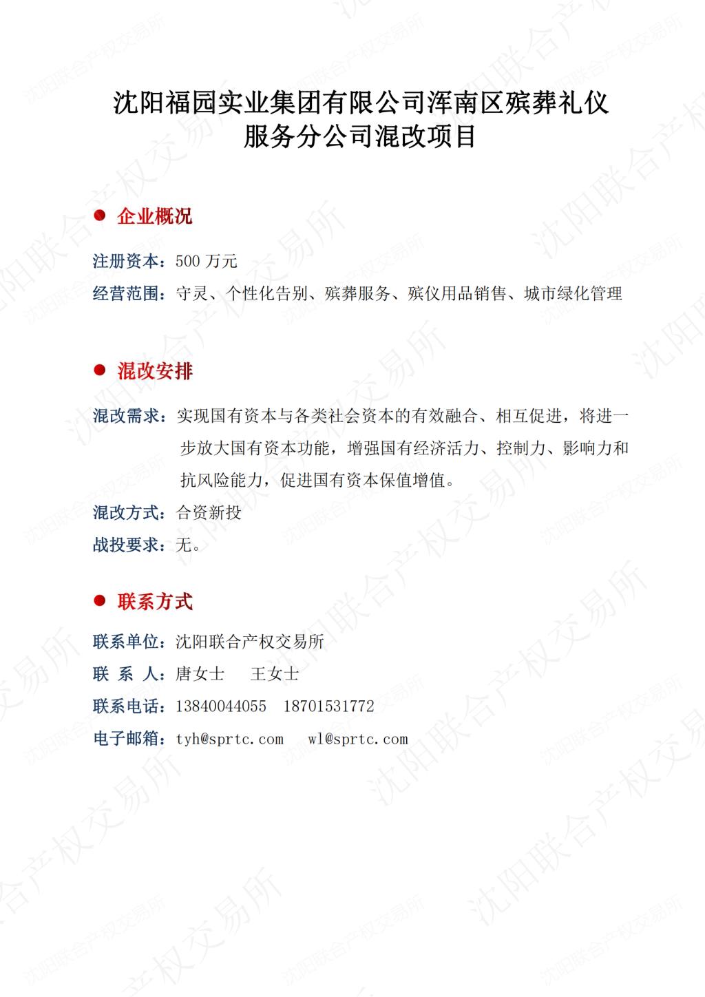21.沈阳福园实业集团有限公司浑南区殡葬礼仪服务分公司混改项目