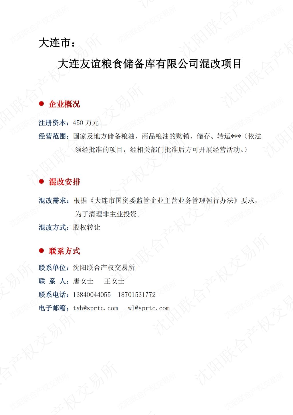 23.大连友谊粮食储备库有限公司混改项目