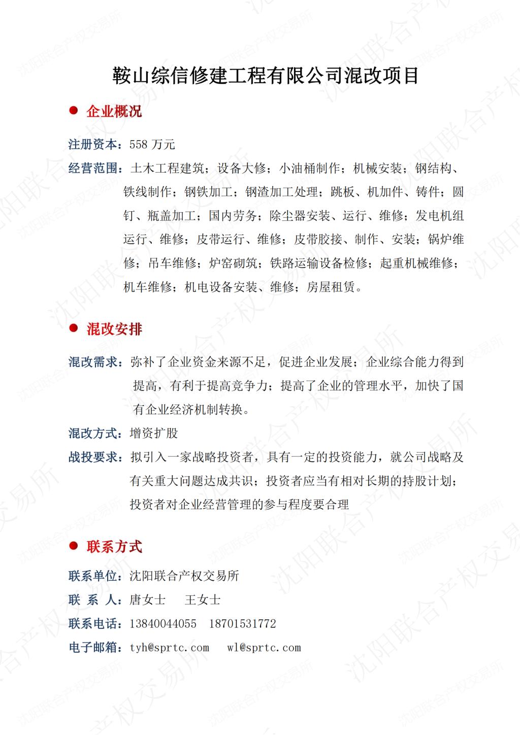 38.鞍山综信修建工程有限公司混改项目