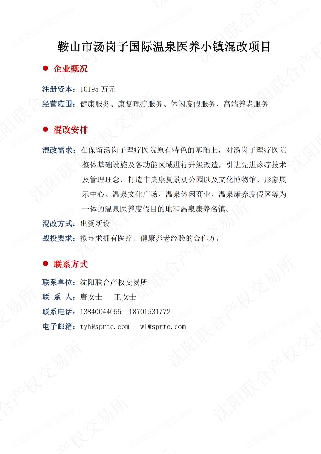 50.鞍山市汤岗子国际温泉医养小镇混改项目