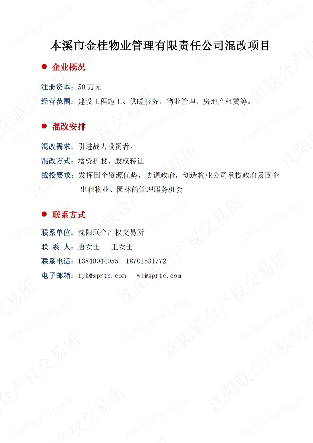 59.本溪市金桂物业管理有限责任公司混改项目
