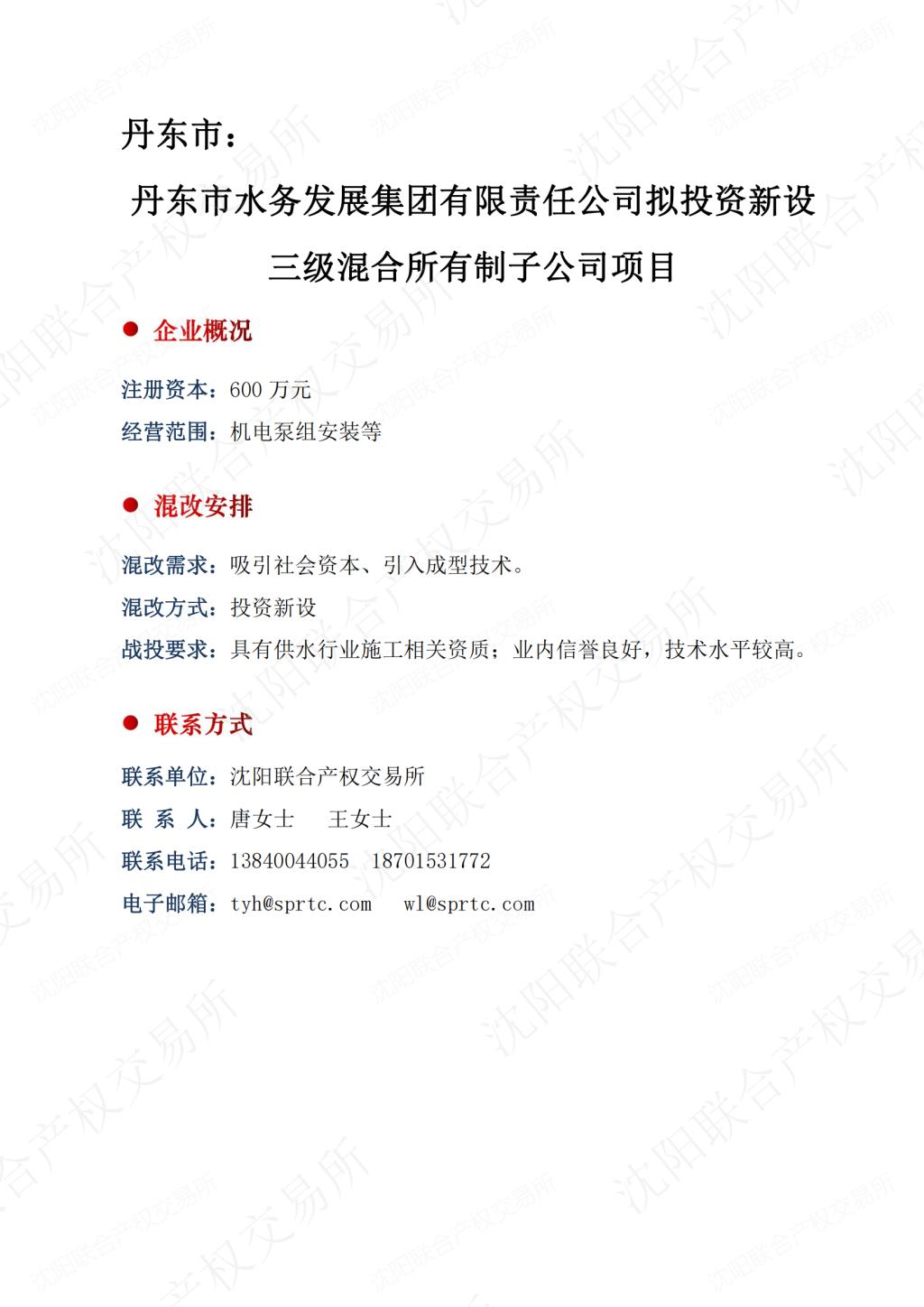 62.丹东市水务发展集团有限责任公司拟投资新设三级混合所有制子公司项目
