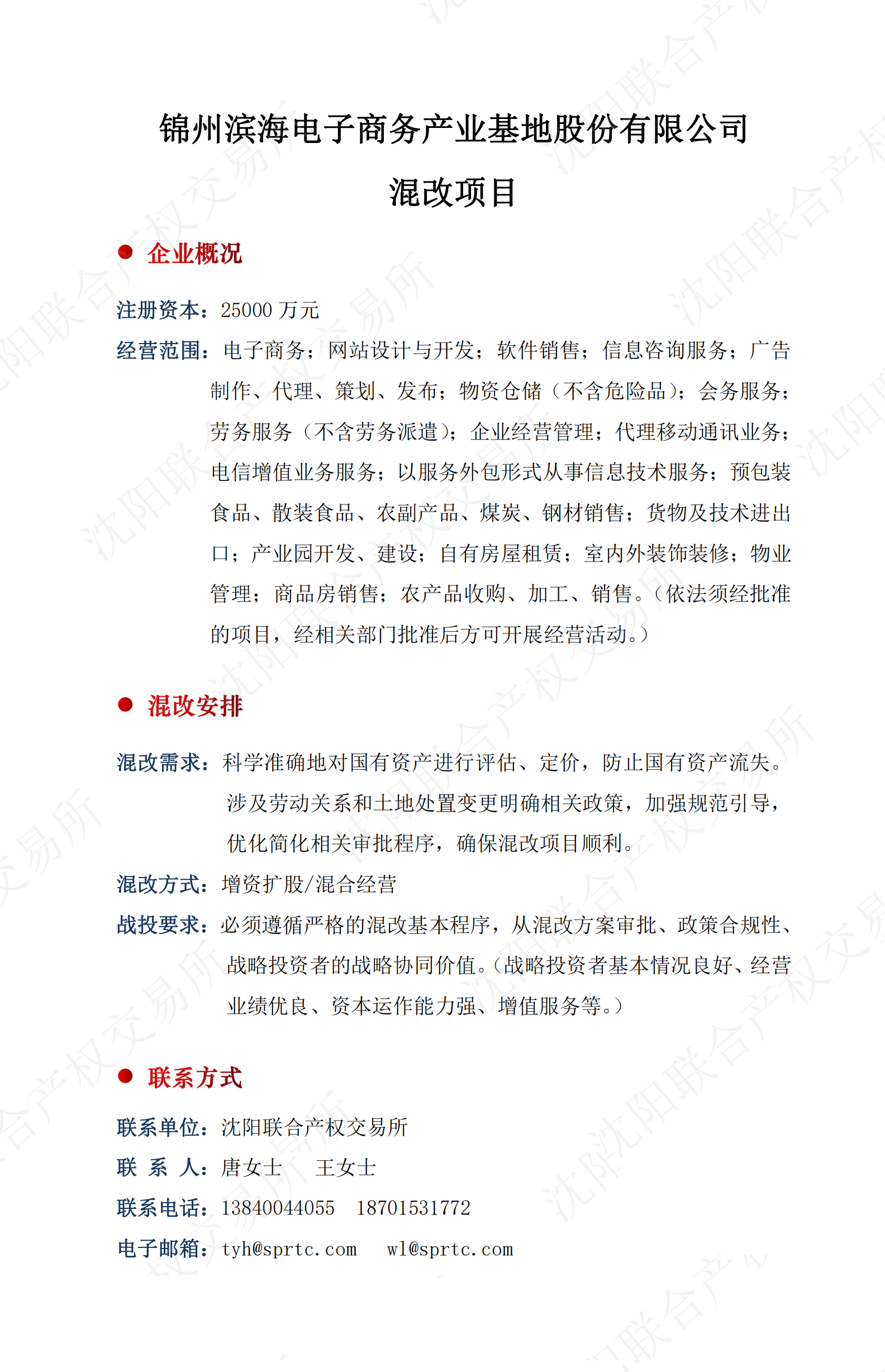 68.锦州滨海电子商务产业基地股份有限公司混改项目