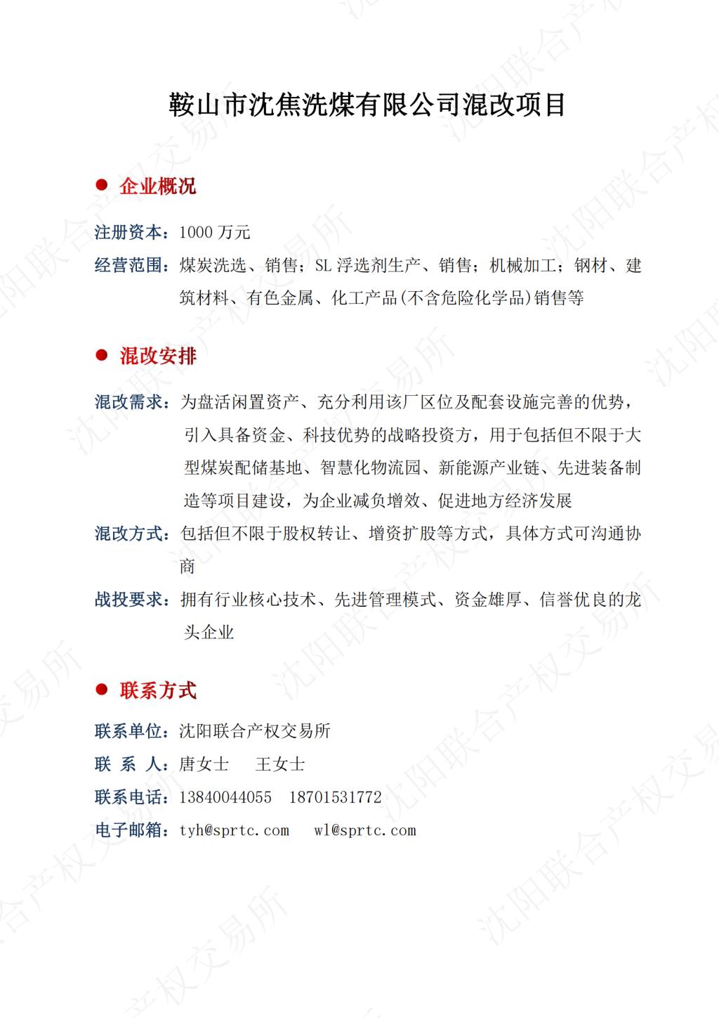 002.鞍山市沈焦洗煤有限公司混改项目
