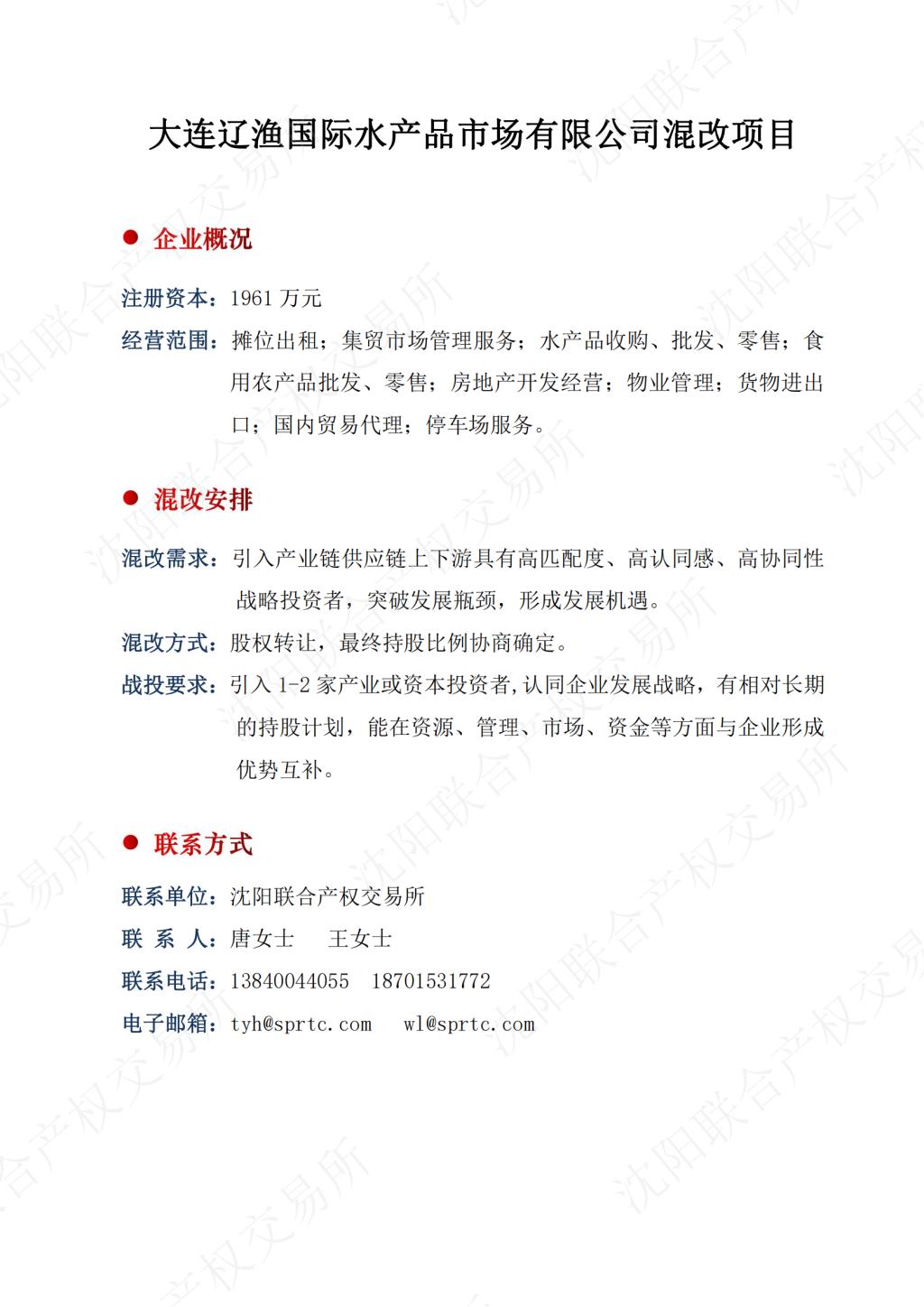 008.大连辽渔国际水产品市场有限公司混改项目