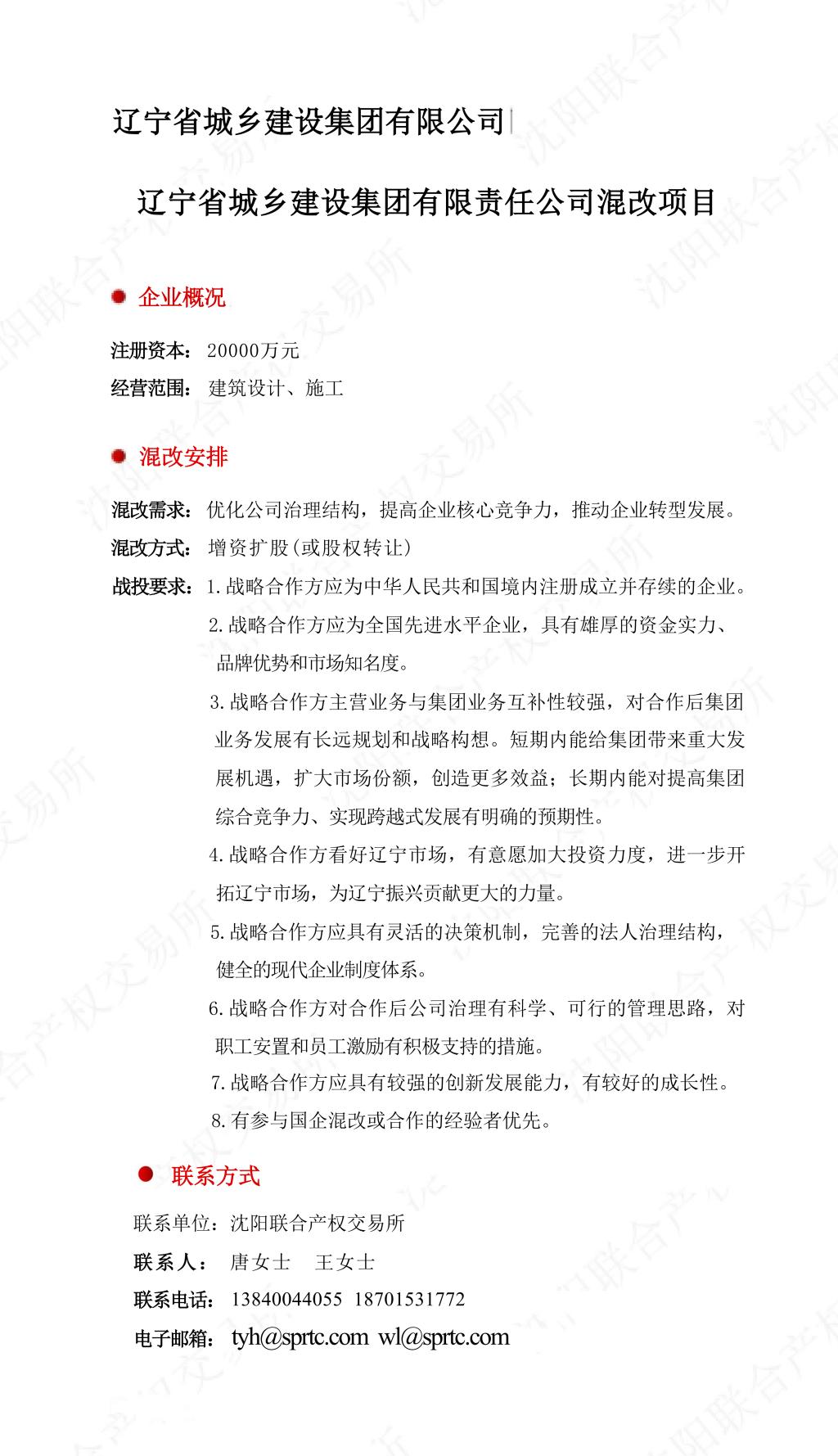 012.辽宁省城乡建设集团有限责任公司混改项目