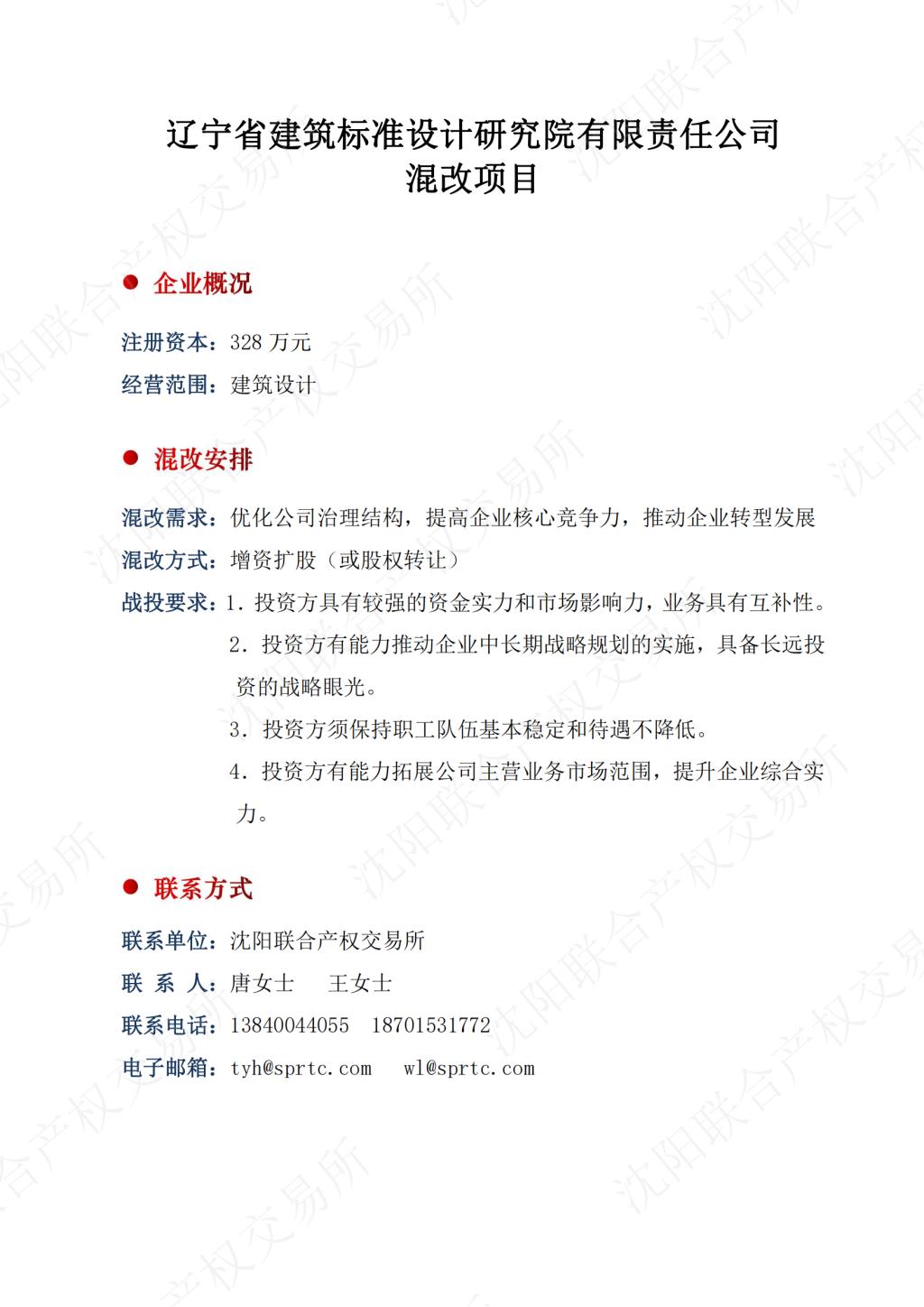 013.辽宁省建筑标准设计研究院有限责任公司混改项目