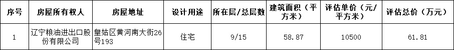 该房产位于沈阳市皇姑区黄河南大街26号1单元903号,房屋建筑面积58.87㎡,所在楼层9层,房屋权证号:沈房权证皇姑字第7686号;整栋楼为钢混结构,设计用途为住宅,房间布局为一室一厅,朝向:南向,该单元设两部电梯每层4户,物业收费1.4元/m2,房屋内部设施简装;目前空置。拟转让。