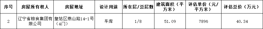该车库位于沈阳市皇姑区燕山路14号,该建筑物总层数为7层,建成时间约为1991年左右,出售对象为该建筑物的1层中间库眼,建筑面积为51.09平方米,处于闲置状态。