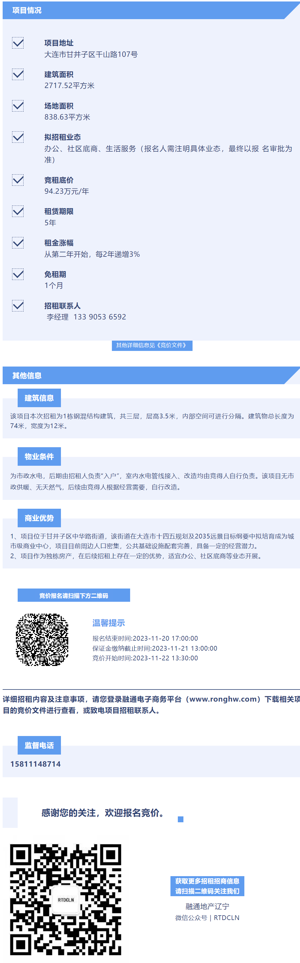 融通地产辽宁公司大连方向资产招租公告(第二十二批)