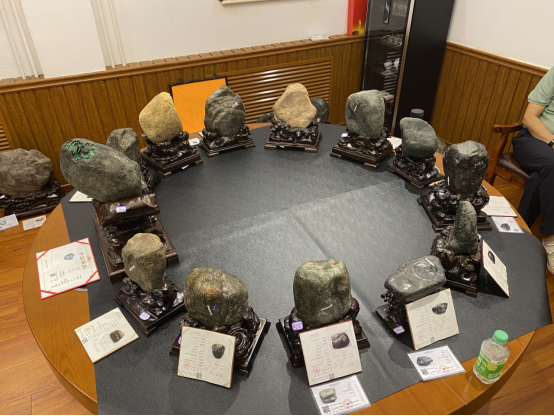 20块翡翠原石均已开窗,由北京中地大珠宝鉴定中心有限公司提供鉴定证书。