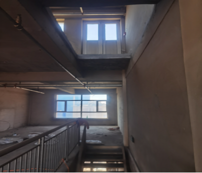 建筑物东西朝向,钢混结构,外墙为石材罩面,塑钢窗,总高3层,用途为店面及办公用途。现处于闲置状态,内部暂未装修,地面为水泥地面,墙面及顶棚均为水泥抹灰罩面。室内通有上下水、供电、供暖、消防等配套设施,维护状况较好。 |