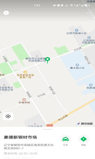 位于朝阳市龙城区兴中路69号,位于朝阳市钢材市场内。东临规划路,南临规划路,西临文体北路,北临文化路,周边通有公交车。