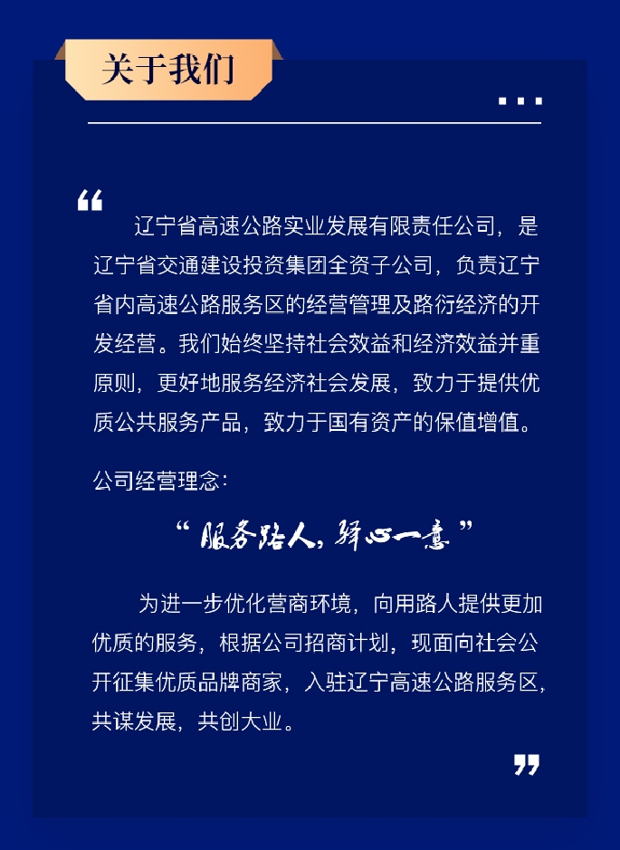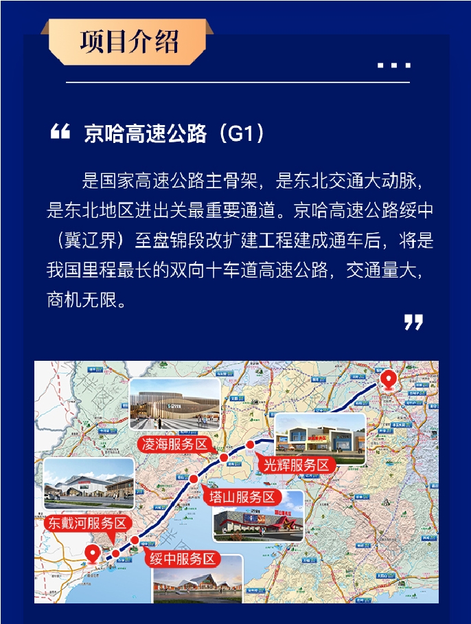 辽宁交投京哈高速(G1)新建服务区商业综合体项目隆重招商