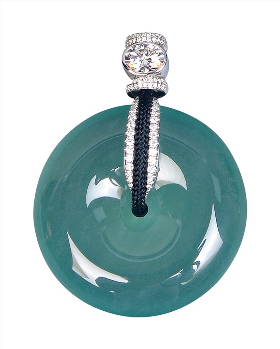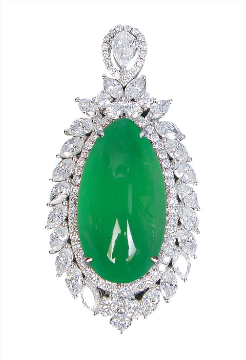 | 007 | 200 | 挂坠 | 镶嵌翡翠、配钻石,印记:Au750,D3.382ct, 总质量:13.20g |
