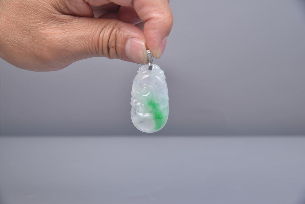 | 011 | 170 | 挂坠 | 镶嵌翡翠、配钻石,印记:Au750、d1.05ct, 总质量:7.57g |
