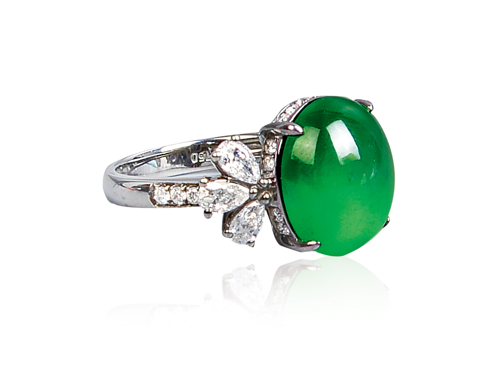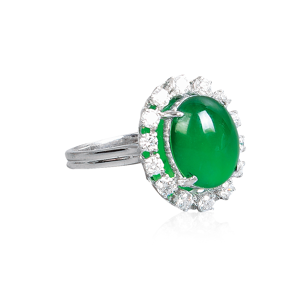 | 123 | 015 | 戒指 | 镶嵌绿色宝石、配钻石, 印记:Pt900 335,D1.17,总质量:12.44g |