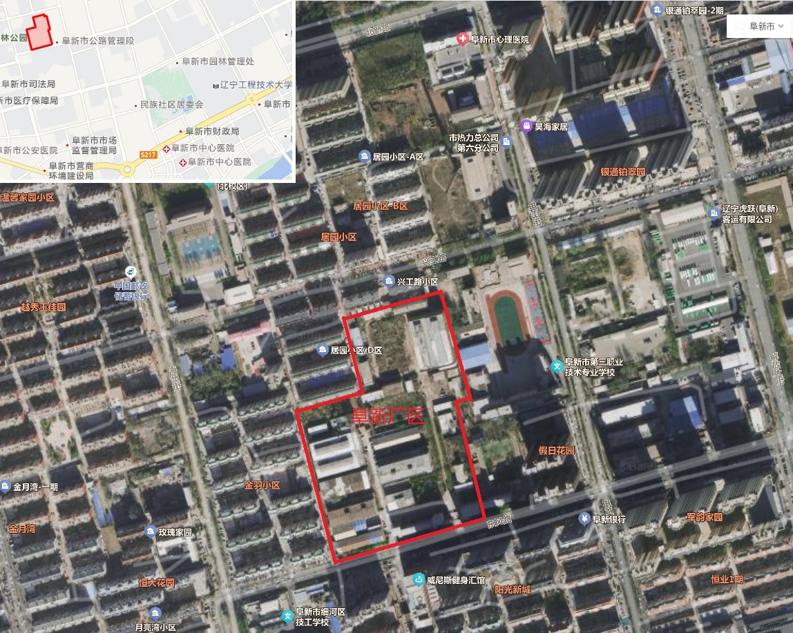 本场地有土地证,地上房屋有房产证,场内除其他个别已租厂房外,其余均处于闲置待租状态,厂区内有停车场地。厂区南临城市主干道,东西南北四侧均为住宅小区,东侧还有阜新公路管理段、辽西技师学院,西北侧还有阜新实验中学,北侧围墙拆除后亦可临街。