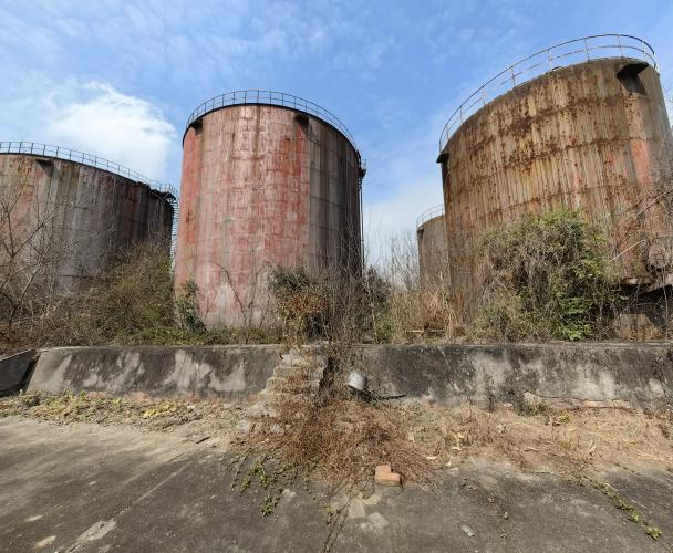资产状况:该油库于兰成渝管线开通后关闭闲置,油库现有栈桥旁围墙倒塌,使用隔板围挡;有立式油罐4个,房屋建筑5处(有裂缝,已停止使用),另搭建板房一间。