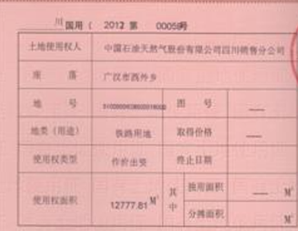 土地证编号“川国用(2012)第00056号”,证载权利人为“中国石油天然气股份有限公司四川德阳销售分公司”,土地用途为“铁路用地”,土地性质为“作价出资”,土地面积12777.81㎡,土地未限制使用期限。