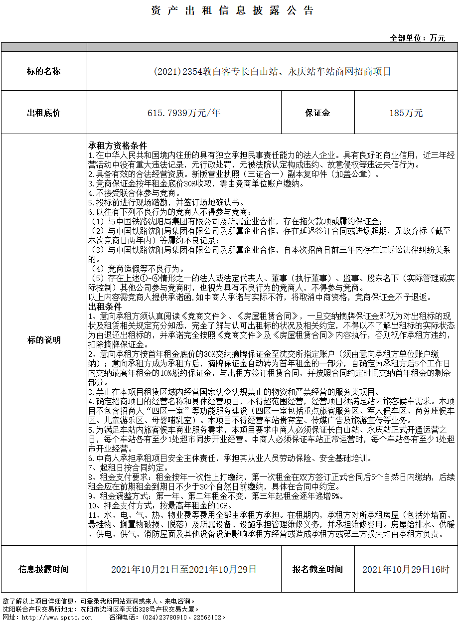 (2021)2354敦白客专长白山站、永庆站车站商网招商项目