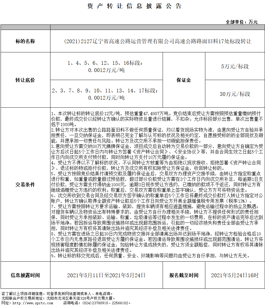 高速公路旧料一专场明细.xls