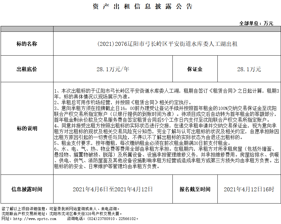 (2021)2076辽阳市弓长岭区平安街道水库委人工湖出租