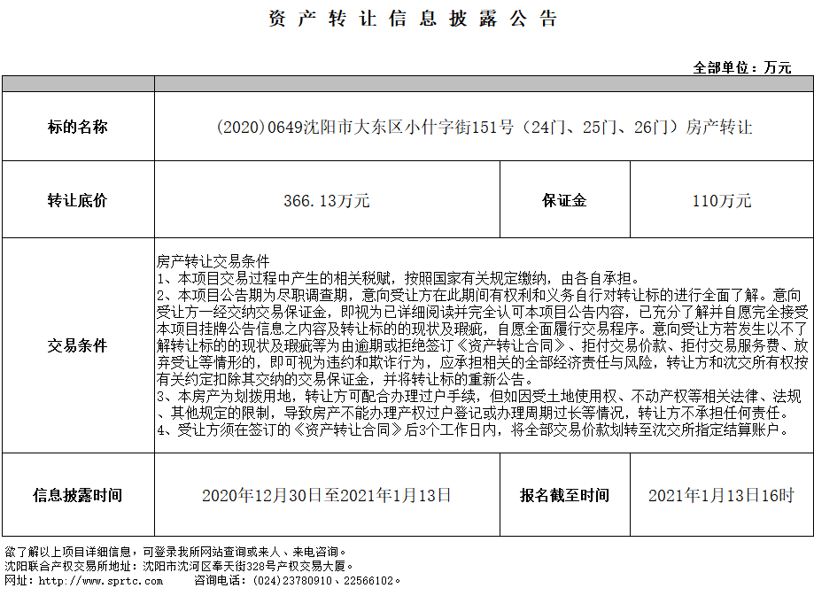 (2020)0649沈阳市大东区小什字街151号(24门、25门、26门)房产转让